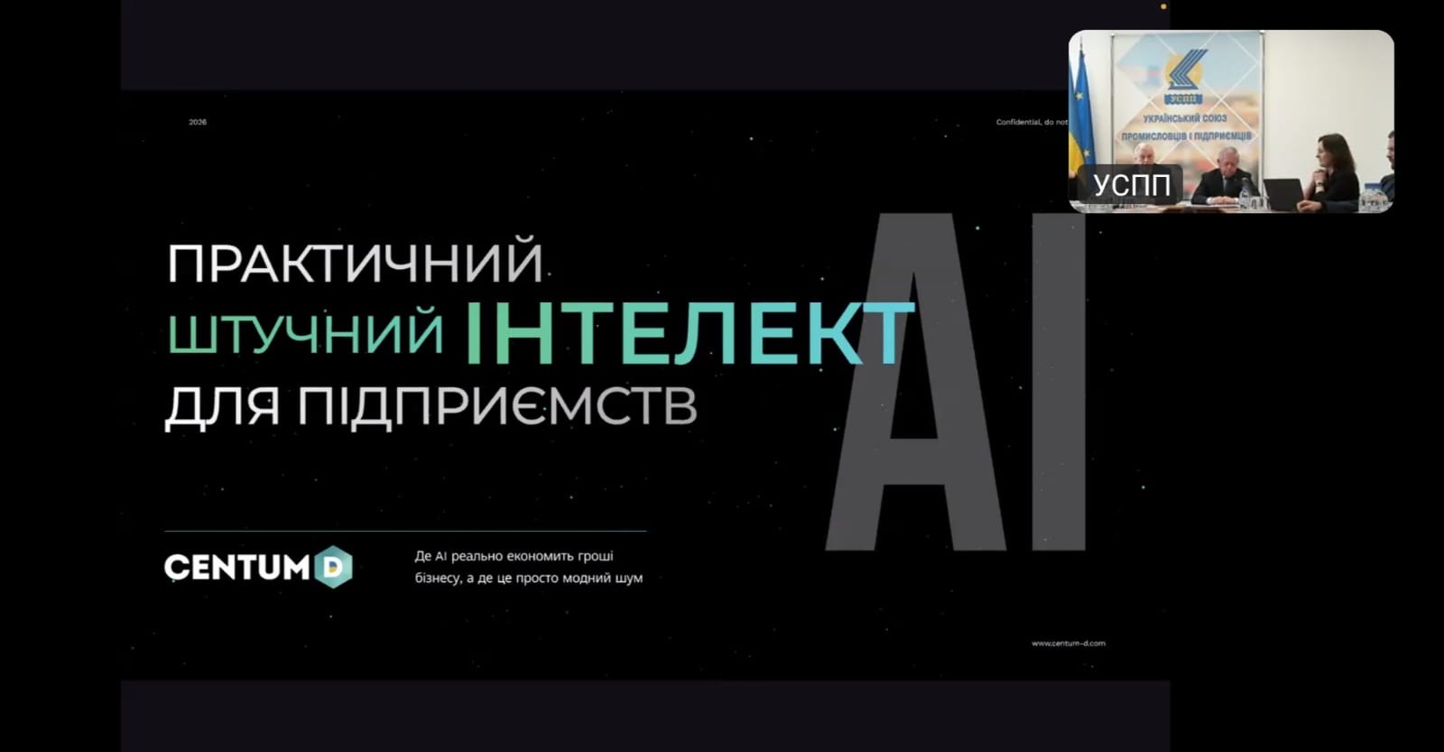 Український союз промисловців і підприємців (УСПП) спільно з ІТ-аутсорсинговою компанією Centum-D провели семінар «Практичний штучний інтелект для підприємств: сценарії, які реально працюють», який зібрав понад 200+ учасників — керівників бізнесу, ІТ-фахівців та експертів із цифрової трансформації.