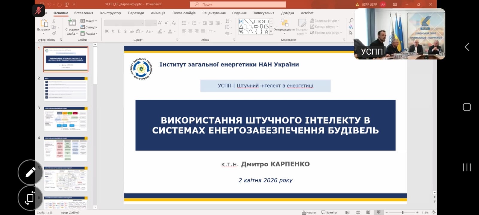 Окремий блок семінару був присвячений застосуванню штучного інтелекту в енергетиці. Інститут загальної енергетики НАН України представив рішення для використання ШІ в системах енергозабезпечення будівель, зокрема для аналізу енергоефективності та оптимізації споживання ресурсів.